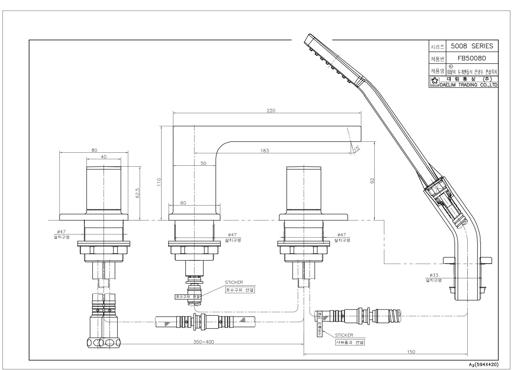 Thông tin cơ bản về Đầu vòi sen tắm đứng nhập khẩu chính hãng Hàn Quốc thương hiệu Dobidos FB 5008DC :